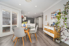 The heart of the home is undoubtedly the gourmet chef's kitchen, with its sleek stone benchtops, gas cooking, and an abundance of cupboard space. The luxurious bathroom, with its floor-to-ceiling tiles, adds a touch of indulgence to your daily routine. The house also benefits from multiple light-filled living areas, including a separate lounge and dining, plus a family area, all united by beautiful timber flooring, downlights, plantation shutters, and ducted air-conditioning for year-round comfort.